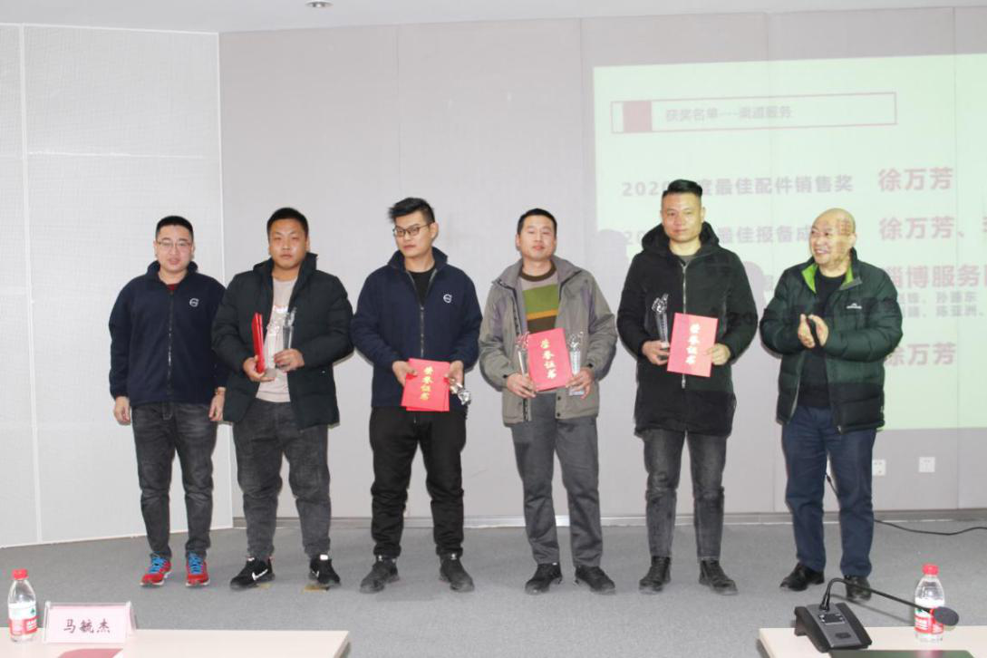Then the 2020 channel sales volume ranking and market share ranking were announced. Sales manager Zong Qideng won the annual best sales volume award, Yan Bingfeng won the annual best sales market share award, and Liu Tao won the annual best sales contribution award; channel service Xu Wanfang won the best accessories sales award style="font-size: 10.0000pt;">、Annual Best Report Transaction Award, Annual Best Service Sales Award.The Zibo and Jining service teams won the Best Service Team Award.